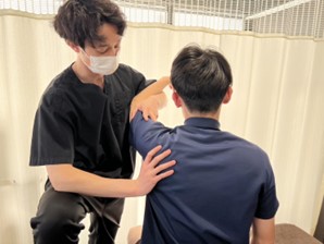 首の動きは「背中の骨(胸椎)」の柔らかさに左右されることがあります。首が痛い人の多くは、背中が丸まって固まっています。 当院では、首をバキバキ鳴らすような怖い施術はしません。土台となる背中の関節に優しくアプローチし、首にかかる負担を物理的に減らしていきます。